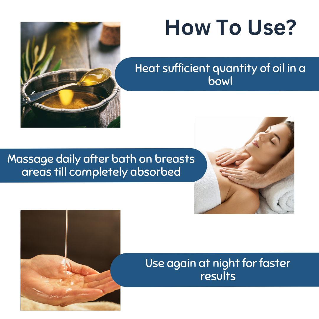 - Pure and Natural Goodness: We are dedicated to offering you a skincare solution that is free from harsh chemicals and additives. Our Ayurvedic Breast Firming Massage Oil is pure and natural, ensuring it's safe for your skin.
