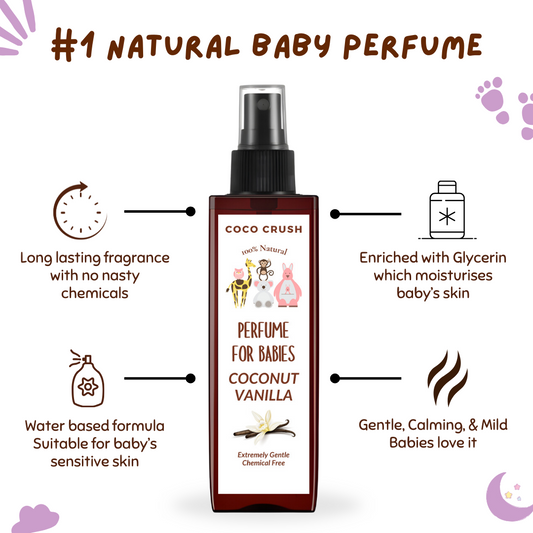 - Natural Fragrance: Infused with the sweet and comforting scent of coconut and vanilla, our perfume offers a natural and subtle aroma that is gentle on your baby's skin and senses.