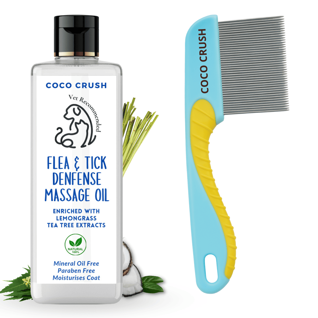 Organic Tick & Flea Defence Oil and Long Grip Coat Comb