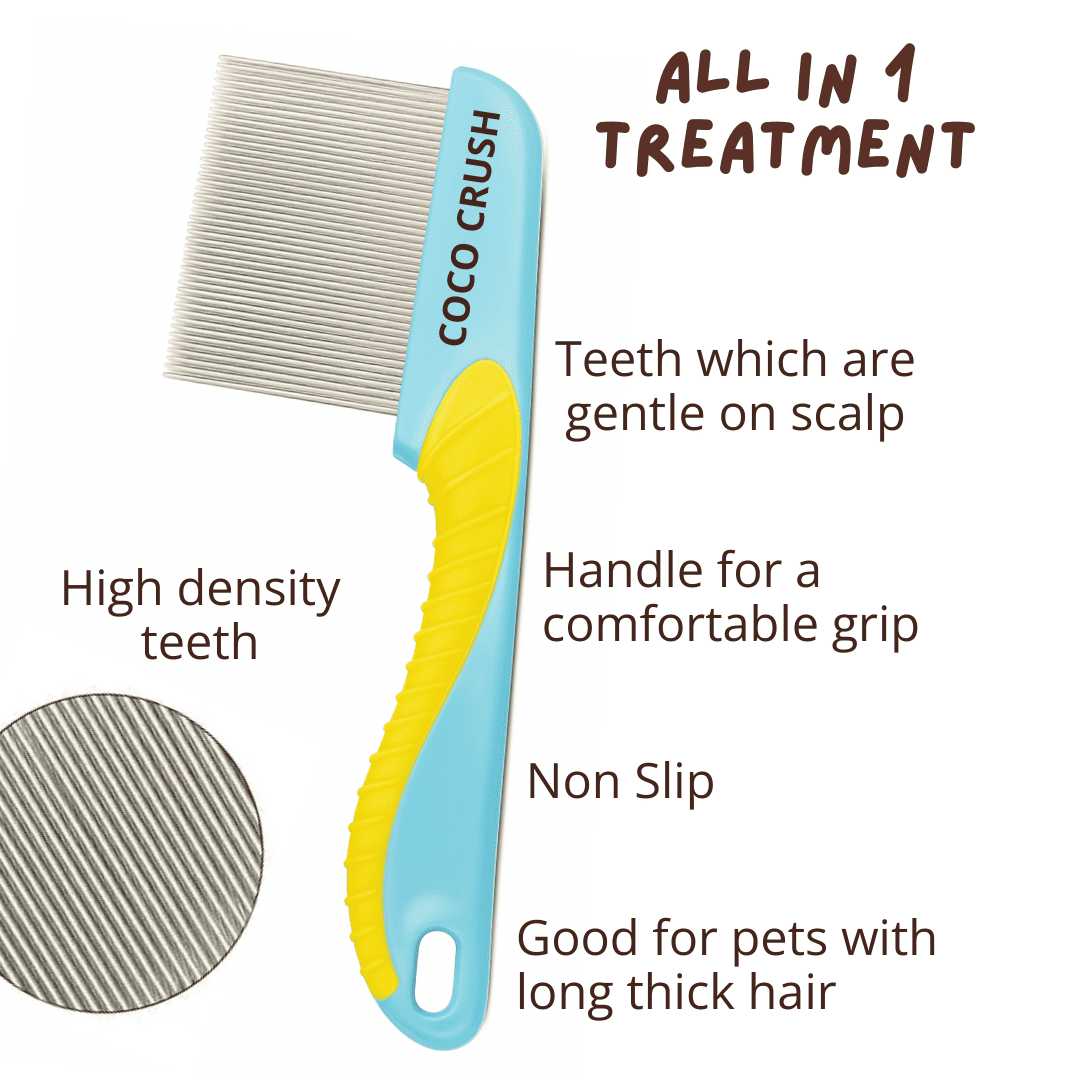 The included stainless steel long-handle comb offers superior grip and reach, helping you work through thick or long fur with ease. Its rounded teeth ensure comfort while removing pests, eggs, and debris deep from the coat.